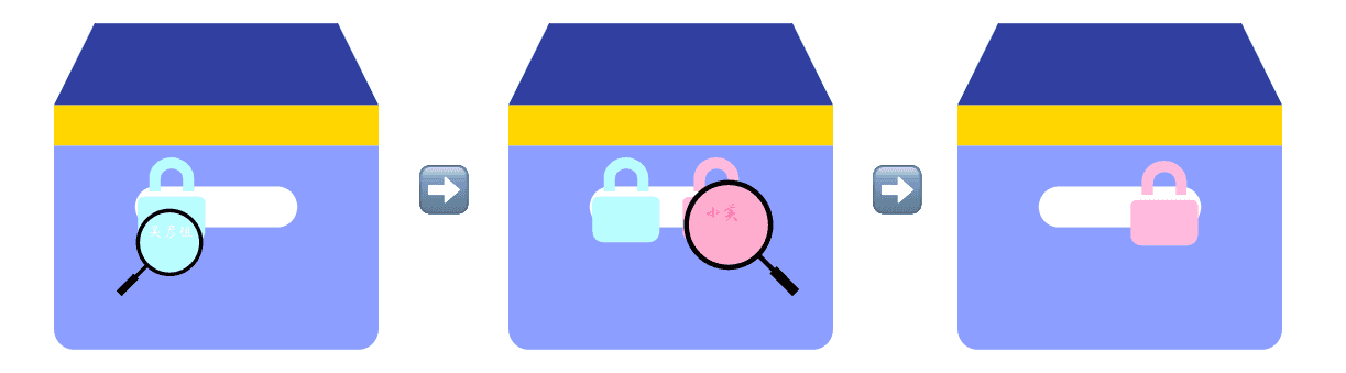 当你解开自己的锁,剩下的可能是死党的锁。他轻轻松松就能解开,获取纸条内容。